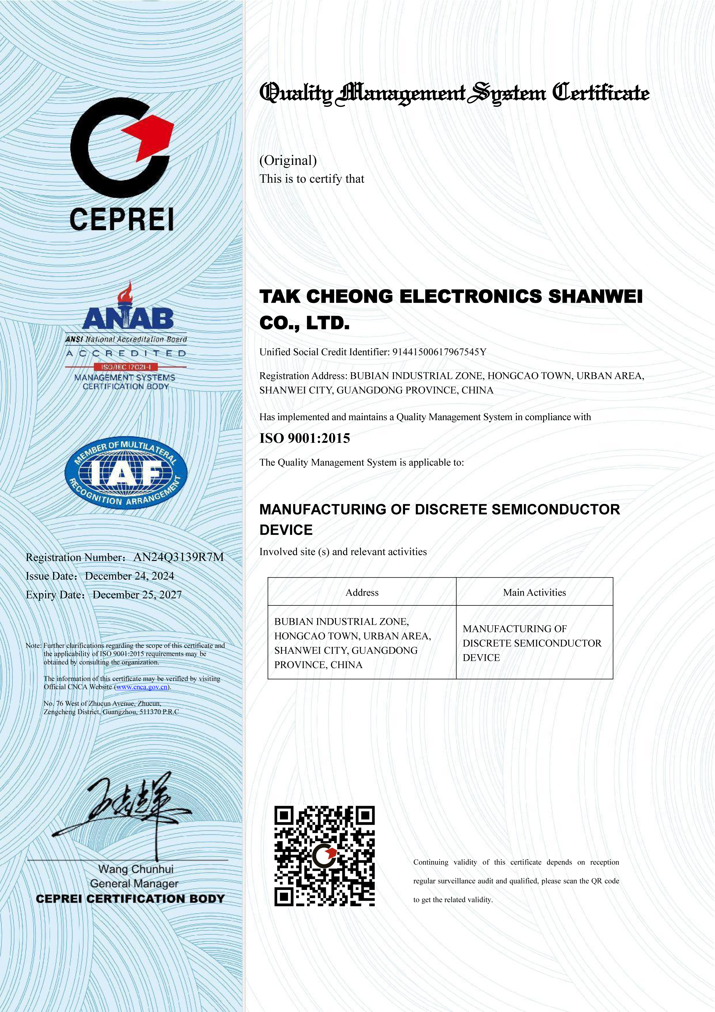 Tak Cheong Electronics (Holdings) Co.,Ltd.